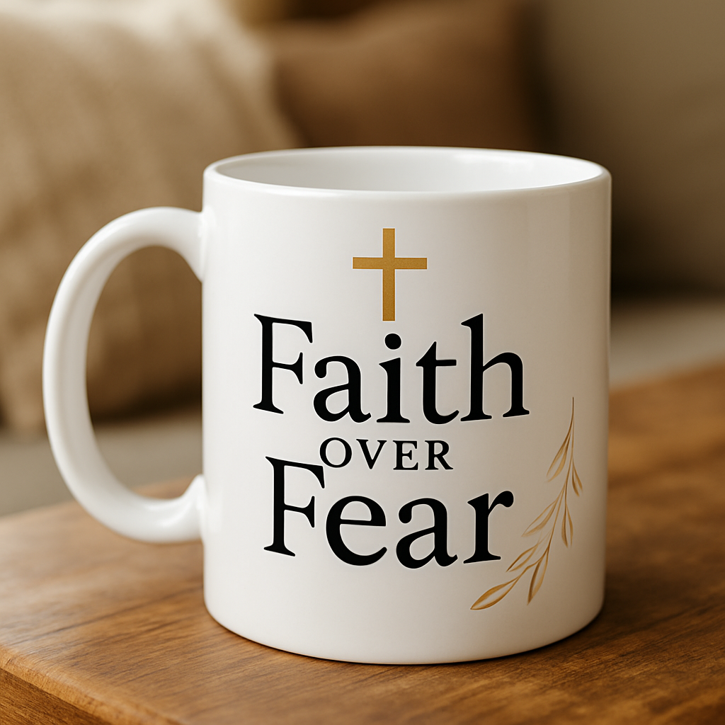 "This Faith Over Fear mug brings me peace each morning — a simple daily reminder to trust God over fear."